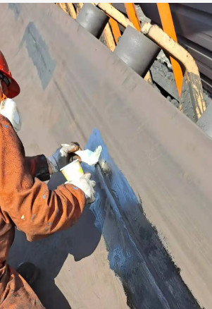 我们公司研发的新型高性能快速输送带修补剂,有A,B,C三种组分构成使用。三组分高分子材料组成,使用过程中应该注意到A+B组分混合后能快速进行快干,速化,凝固。普通的温度下例如在:常温环境下快速固化形成有一定弹性的聚氨酯弹性体,通过C组分橡胶底材处理剂可与橡胶底材牢固粘接,其强度大,柔韧性能高,附着力高,没有异味,短暂施工快速固化,效果优于普通产品,很好的粘接力也大大提高了其在实际中的应用。